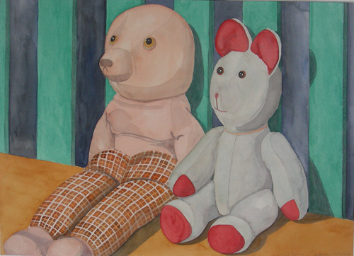 Speelgoedberen 2, aquarel.